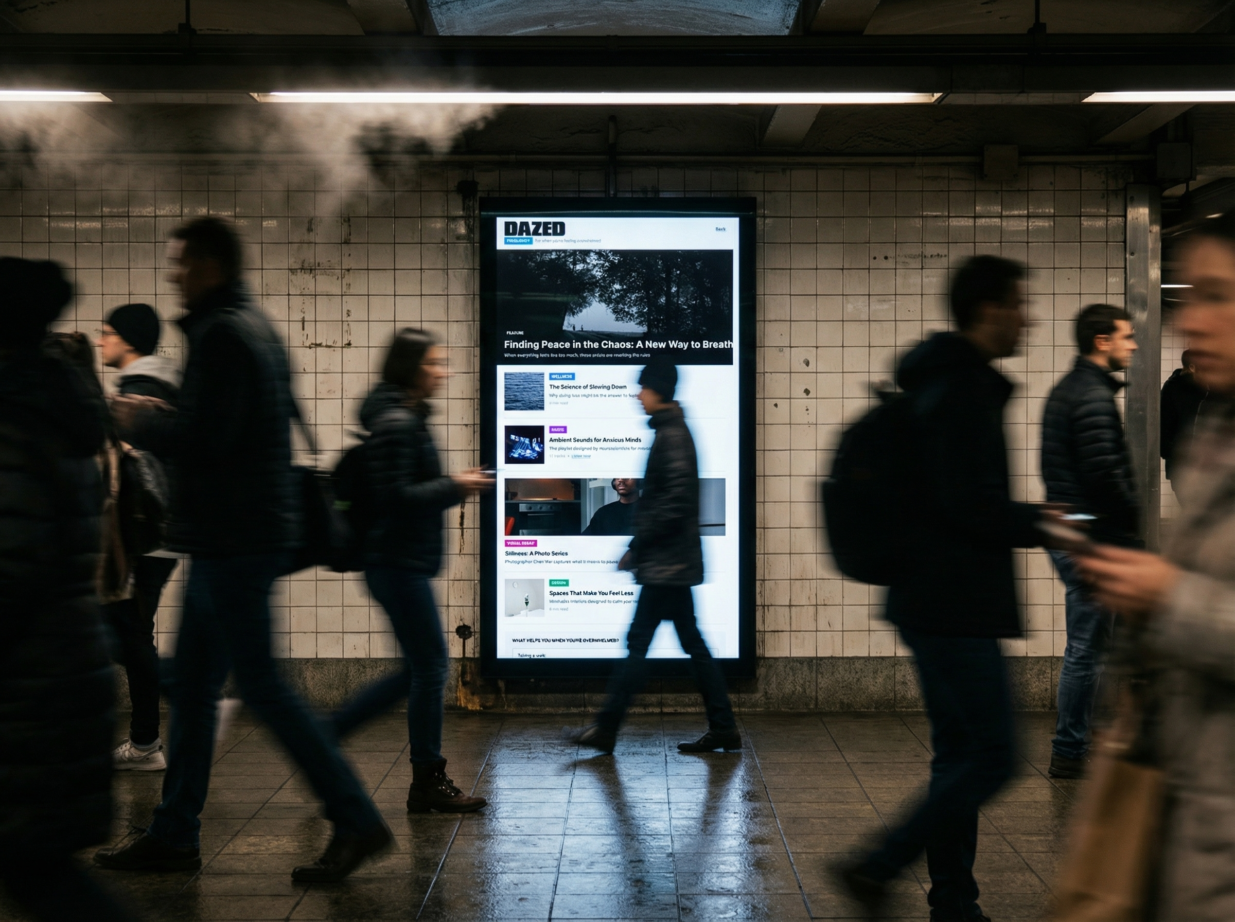 Interactive digital OOH placements in subway platforms, bus stops, and other places where people instinctively doom scroll to pass the time.